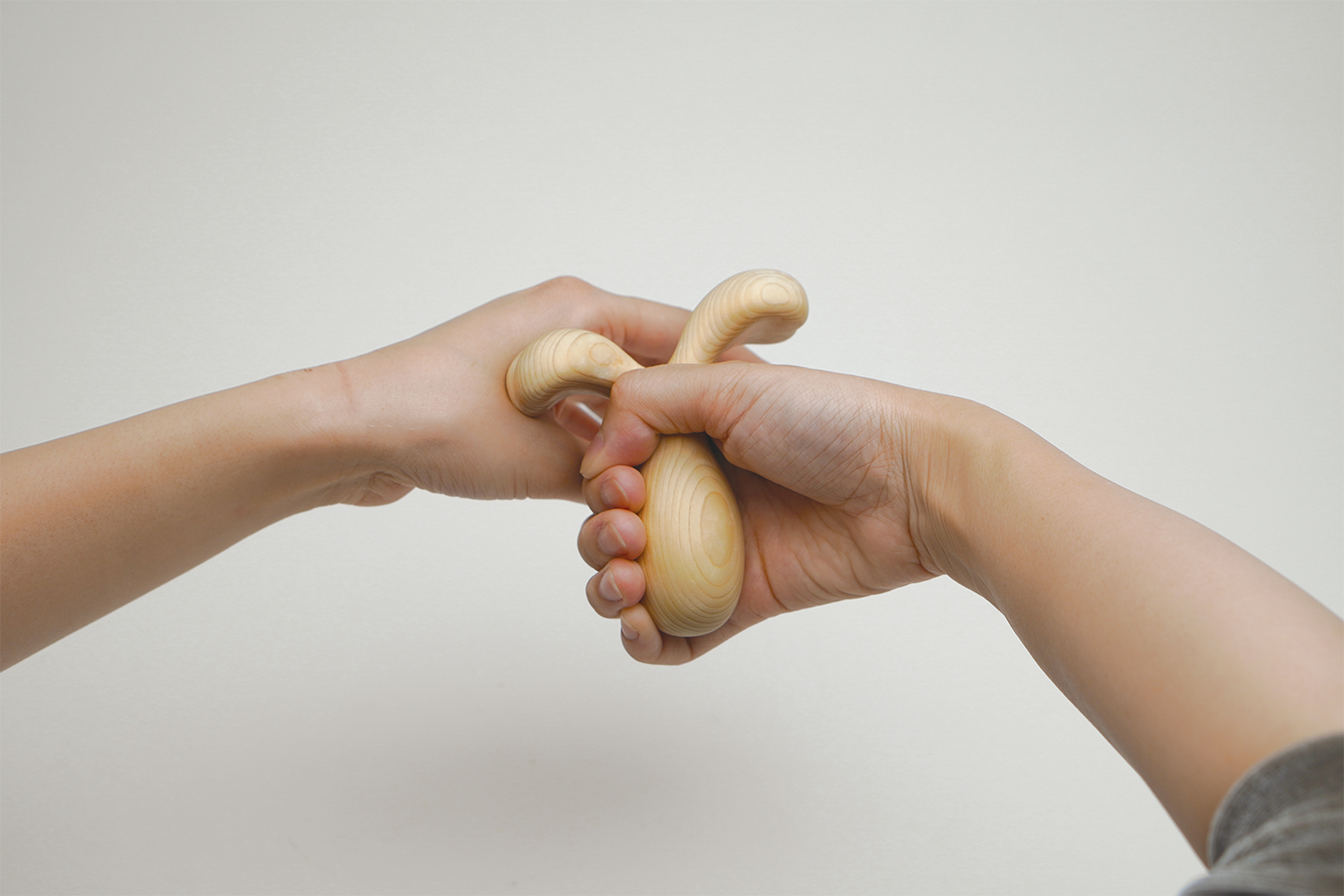 左足を思うように動かせず靴の着脱に過剰な時間を要するという課題の解決を目指すプロジェクト。制作したプロダクトは、靴べらとして機能すると同時に体重を支える杖としての役割も果たすものとなっている。 -
