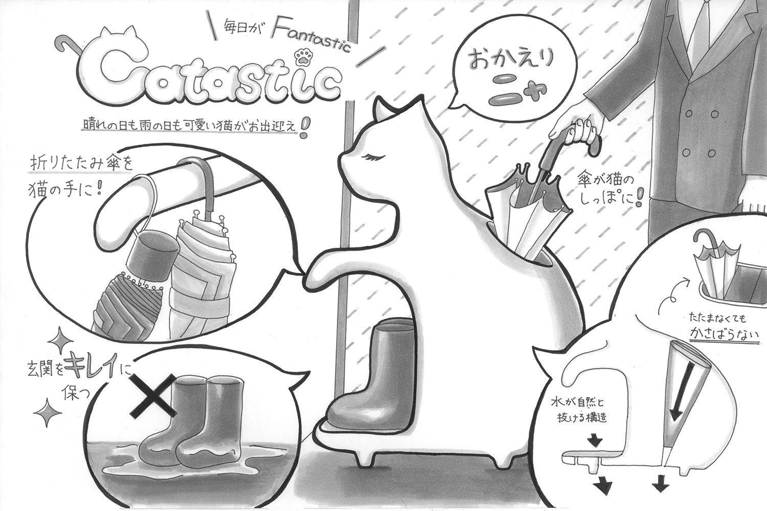 ビニール傘が玄関に何本か溜まっていませんか?そんなあなたにTotte! Totte!は着脱式の傘の取手。取手の着脱によって傘の盗難を防ぎ、通知 機能によって傘の忘れを防止する。これらの機能でなくさない傘を実現 し、お気に入りの傘を大切に使い続けることができる。 -